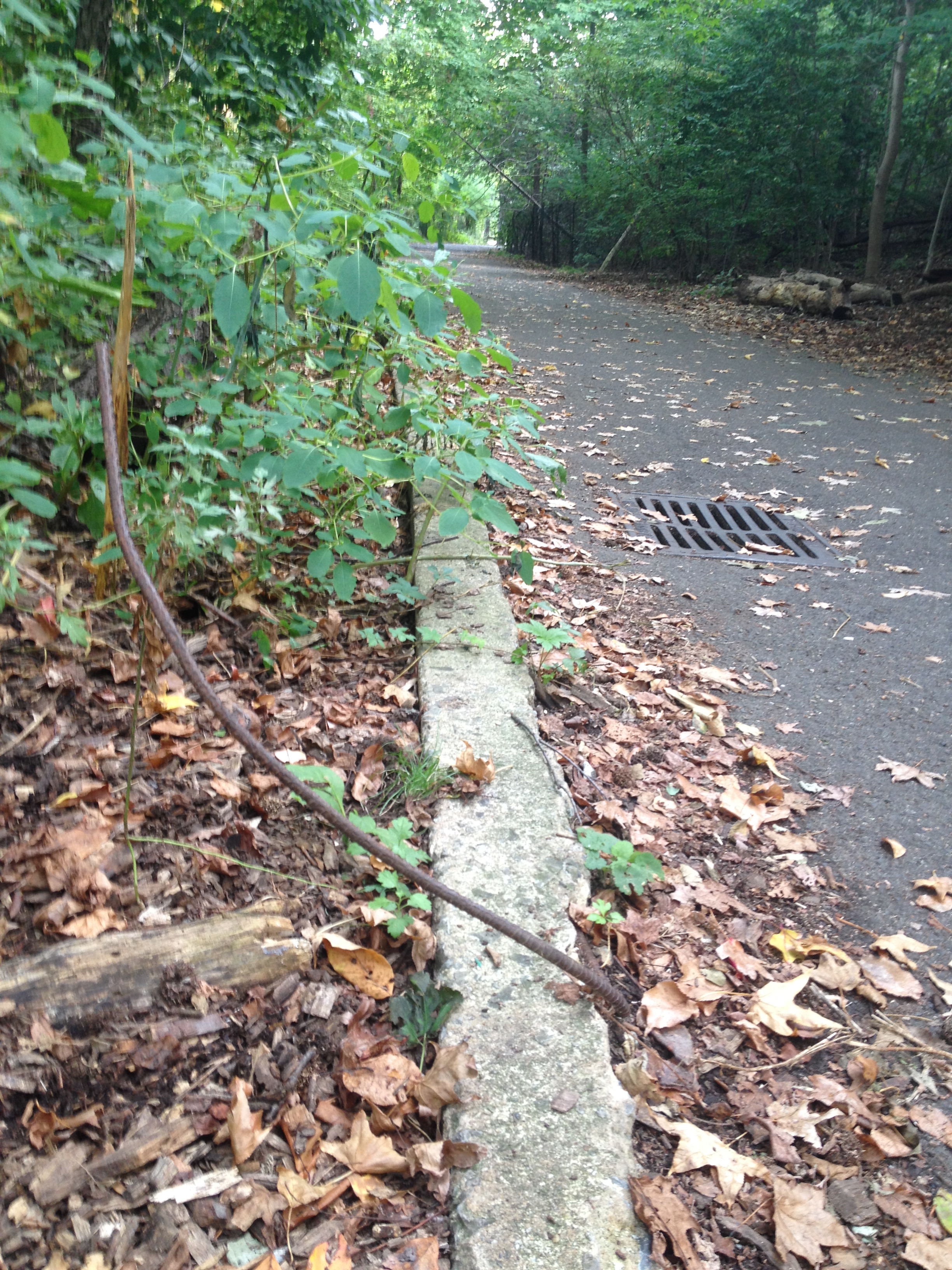 It started innocently enough, on one of the woodchip paths that splits off from the paved walkway along the Lullwater (such a gentle name!), sloping down to the water and then back up. I was scanning the water for herons (unsuccessfully) and the trees and bushes for warblers (only slightly more successfully). At the point where the trail rejoined the pavement – WHAM. It was as though someone or something had grabbed my foot. I went down hard, leading with my chin, glasses flying off my face and skittering onto the grating of a storm drain. (Mercifully, they did not fall in.)