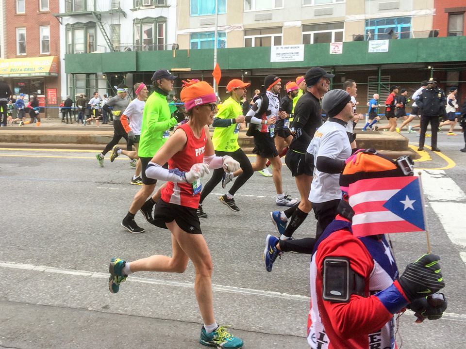 The wind was the headline story – sustained winds of 20 mph, gusting to almost twice that. When I share stories with other runners, it’s the wind we’ll talk about. The way it pushed us sideways on the Verrazano bridge; the unnerving, rattling sound of our bibs straining against their safety pins; the hats, garbage bags and other debris whipping past us; the unexpected, energy-sapping blast when we turned west into the Bronx in mile 20.