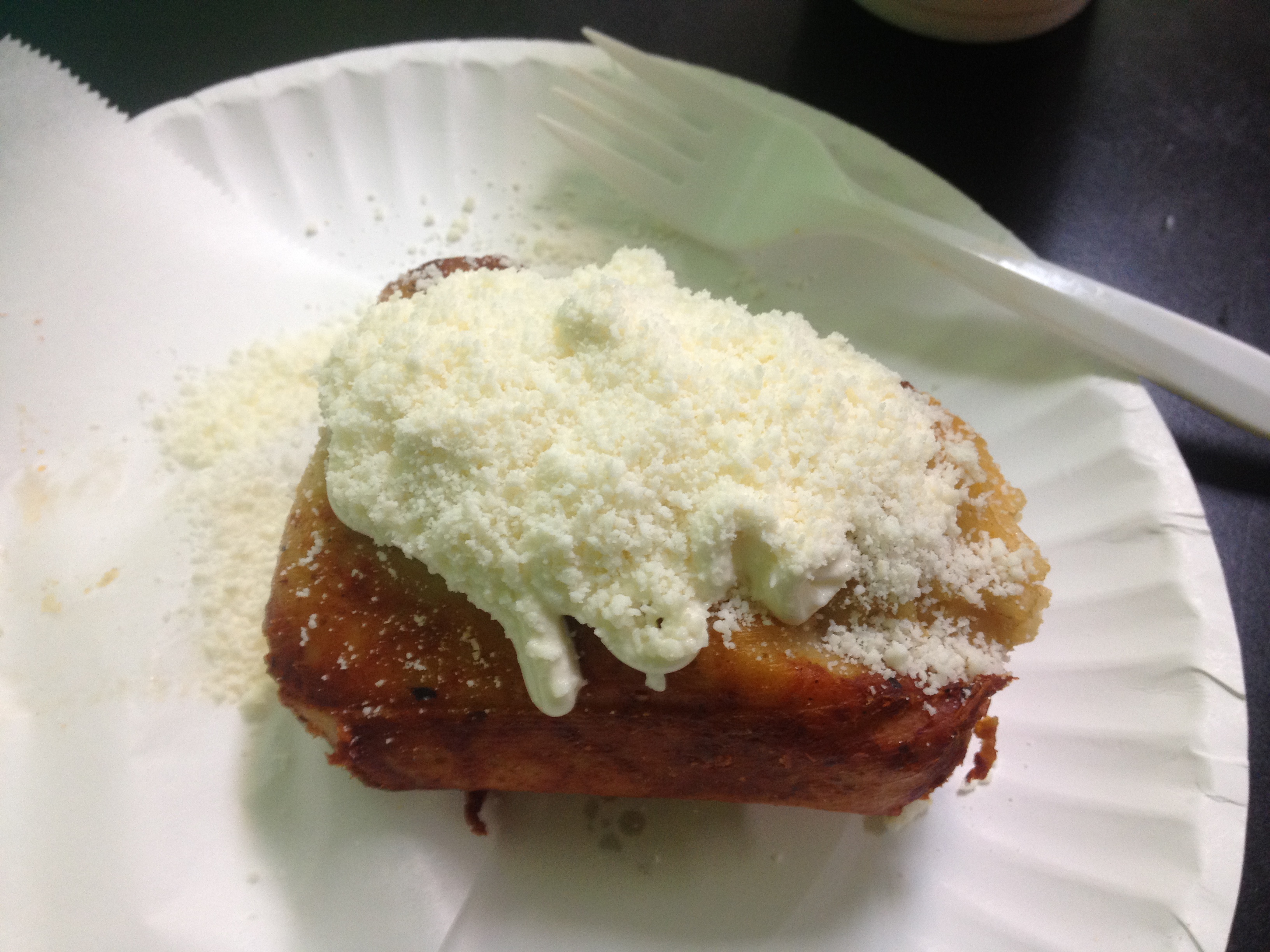 My chuchito was a plump ball of masa, filled with bits and pieces of chicken (watch out for bones) that had been cooked in a savory red sauce, the whole adorable package topped with crema and powdered white cheese. I’ve had tamales that were more meltingly tender (this one was slightly singed on top, presumably from being reheated), but none that were cuter. (Think that’s silly? Well, guess what: “chuchito” derives from a Guatemalan slang term for “puppy.” So there.)