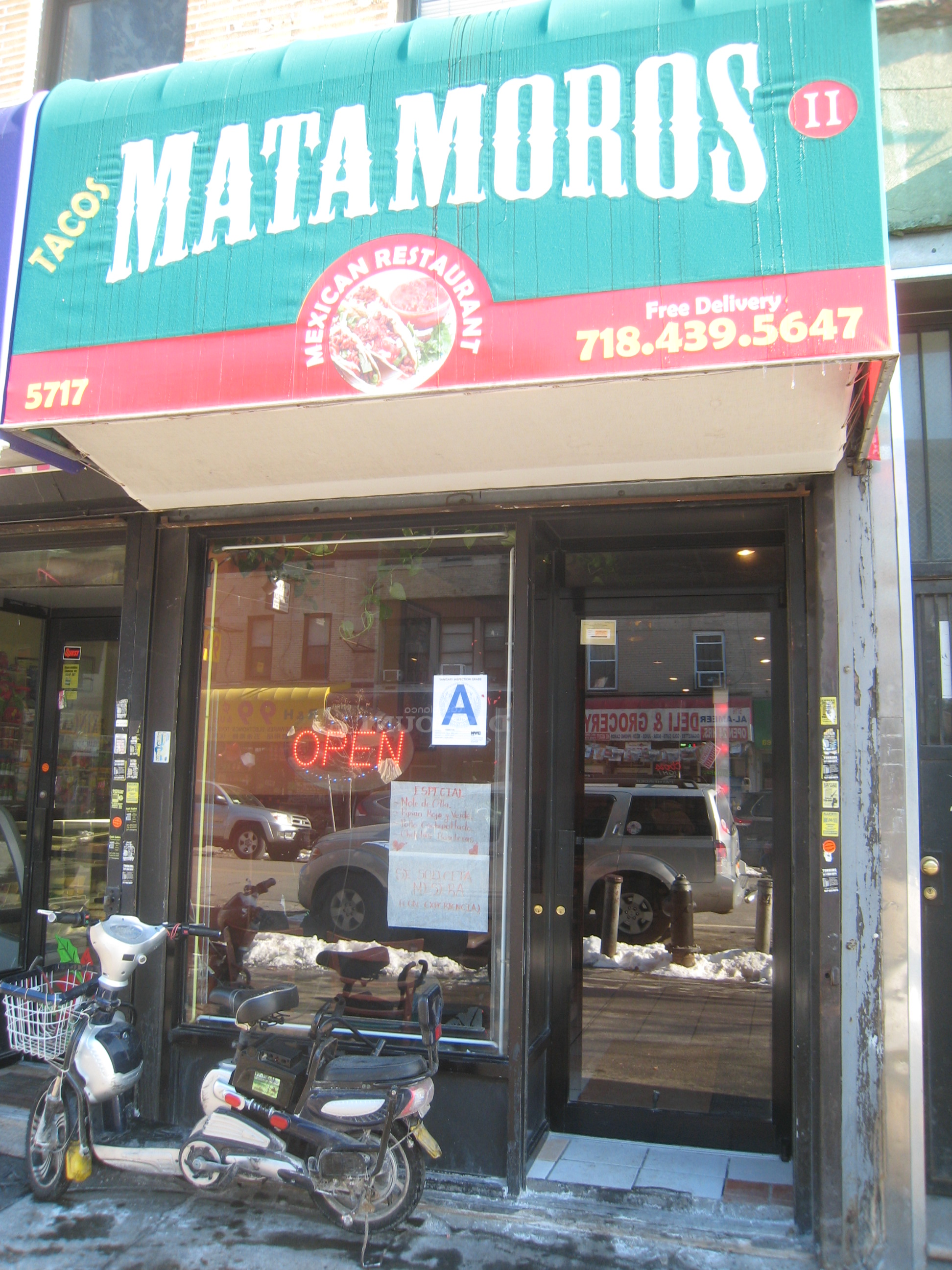 For this final post, I checked out the second, expansion location of a Sunset Park institution: Tacos Matamoros. I’d spotted this place on one of my earlier forays, and liked the look of the (non-taco) daily specials posted out front. So I hopped on an R train to 59th St. yet again and walked the couple of blocks to its narrow storefront on 5th between 57th and 58th.