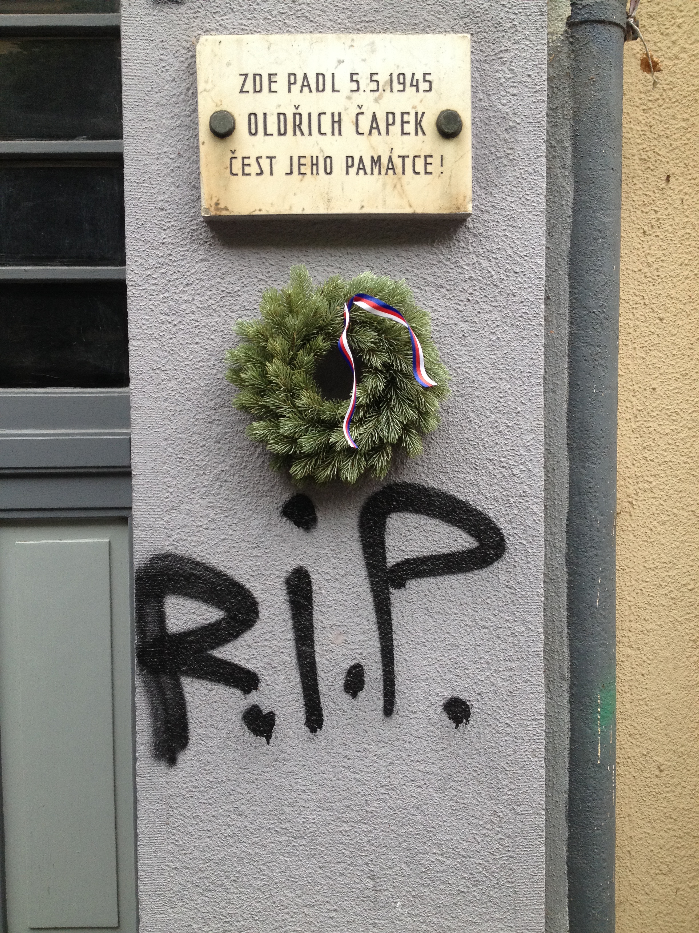 Some concluding thoughts on historical memory. During our time in Prague, I thought a lot about historical memory. Despite my ignorance of Czech history, or possibly because of it, I was struck by the pervasiveness of the city’s confrontation with the darkest chapters of its past. Commemorations were both public and intimate, official and personal. Throughout the city, wall plaques honor Czechs who died fighting the Nazis (most of the death dates are from the first week in May 1945, during the city’s final uprising before its liberation). During our visit, virtually without exception, those plaques were decorated with wreaths and flowers. It’s possible this was an anomaly – had there been a push to hang wreaths to mark the 70th anniversary, a few weeks earlier? – but many of the flowers looked awfully fresh.