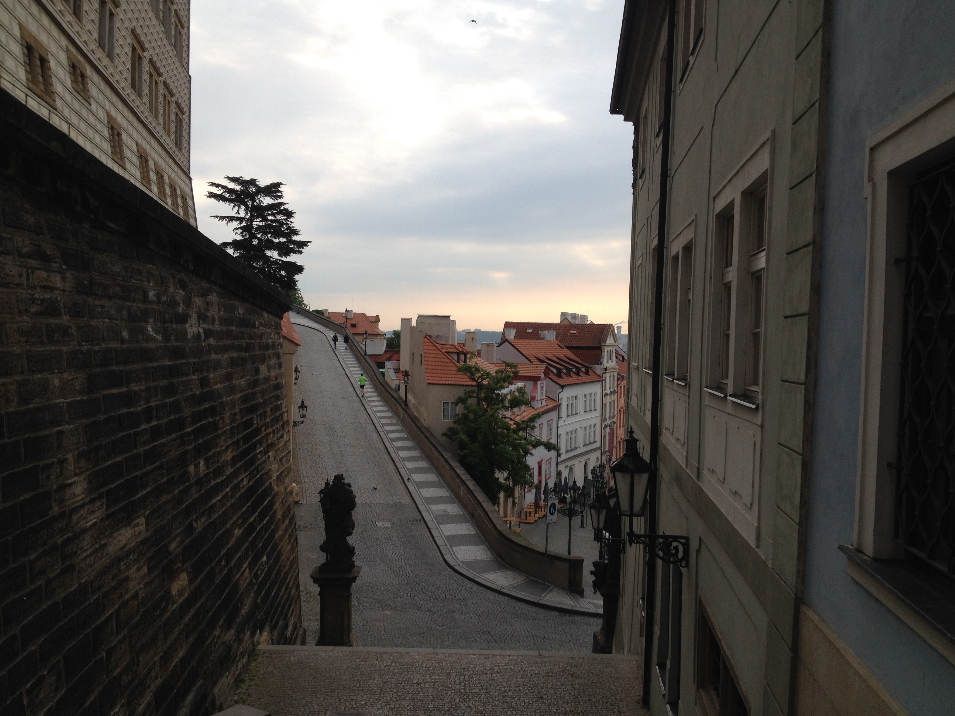 These are not, I should be clear, the kinds of hills you find in Prospect or Central Park. Those make your hamstrings a little cranky and force you to breathe a little harder, but as hills go, they are modest and unassuming. Prague’s hills kick ass and take names. They look like this: