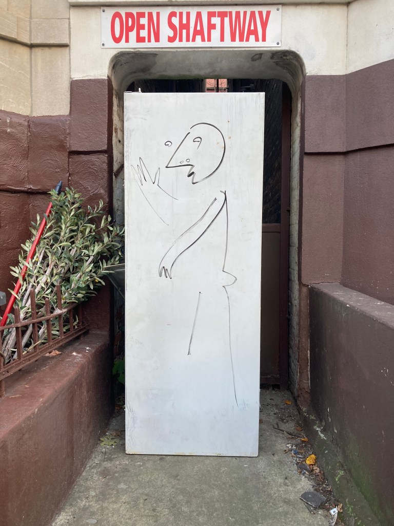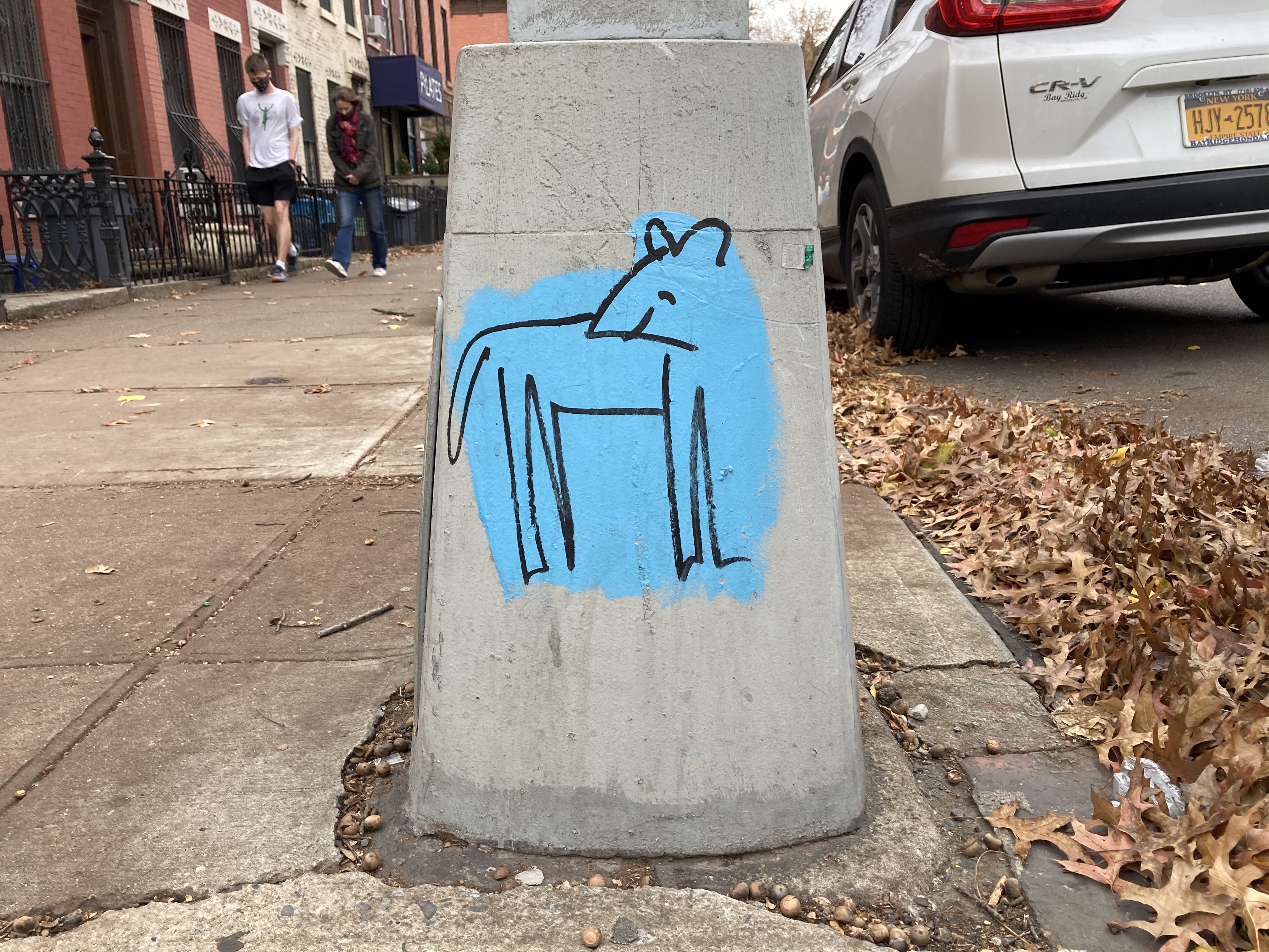 I’ve been enjoying these simple line drawings on walls, lamp posts, mail collection boxes, and just about any other flat surface around the neighborhood. They’re stylized, yet somehow show personality; whimsical, yet sometimes poignant. I hope you enjoy them too.