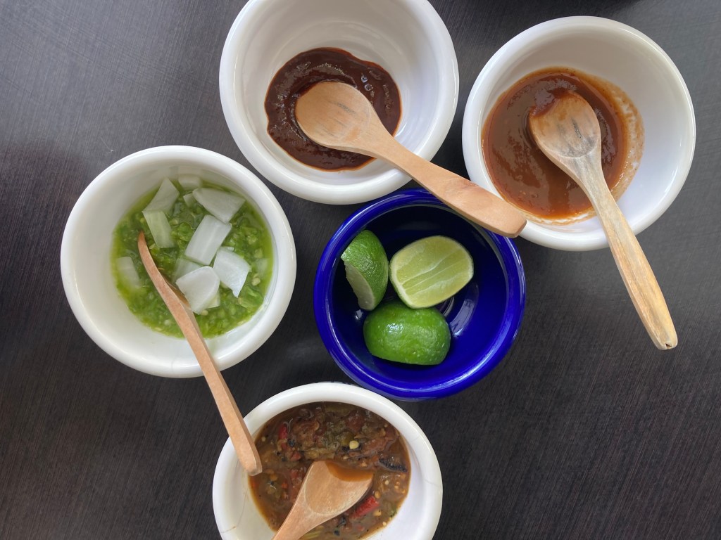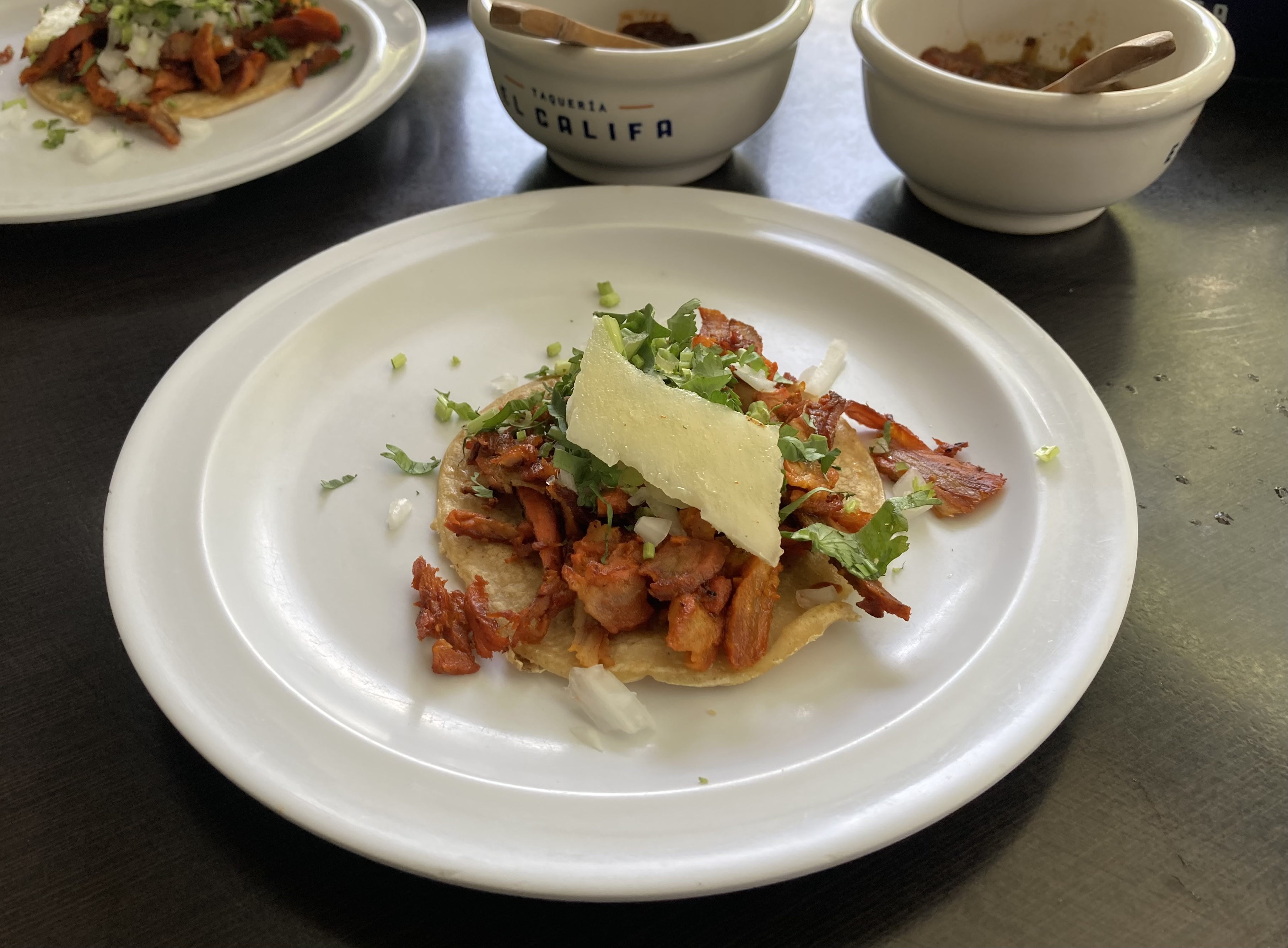 Our starting point was El Califa, an iconic taqueria that, as it happens, is practically around the corner from our hotel. When I say El Califa is ”iconic,” I’m lifting the description you’ll find in various guidebooks, Netflix food shows, and travel blogs. It hasn’t actually been around that long (only since 1994, which is nothing in Mexico City years), but it’s indubitably popular with Chilangos…and now, thanks to its iconic status, with tourists like us.
