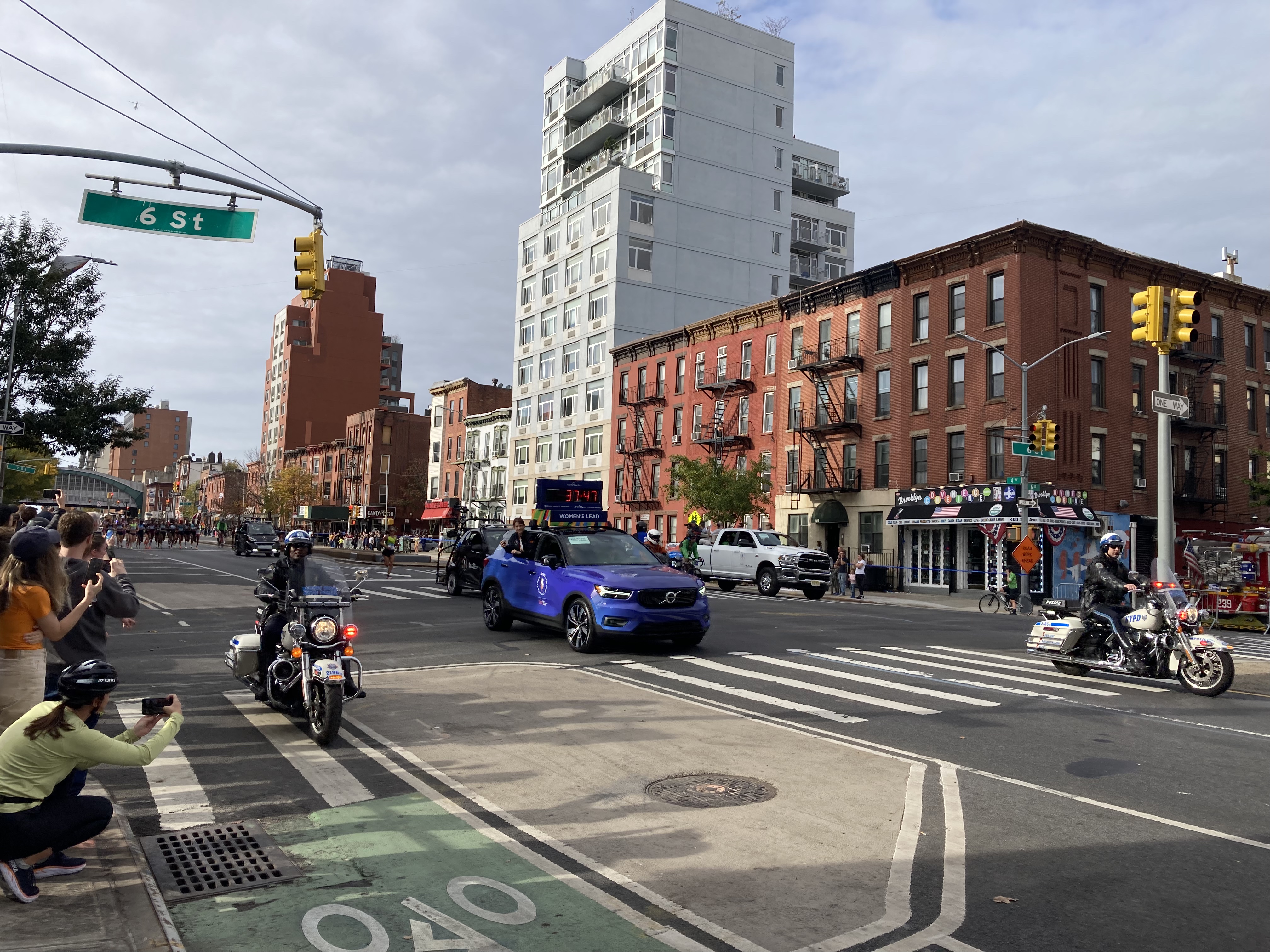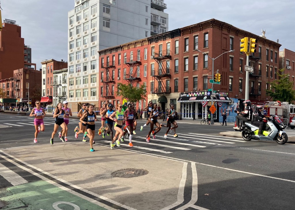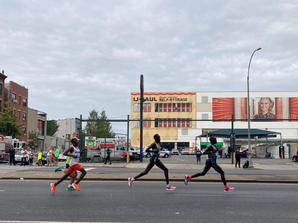 At this early stage in a marathon, there is pretty much always a lead pack. One runner, or two or three, might be a bit out front; maybe even more than a bit. But in a star-studded field like that of the New York City Marathon, you don’t expect to see one person running with nary a competitor in sight. I could barely make out the line of cars and motorcycles escorting the next group of runners, much less the runners themselves. They were blocks away.