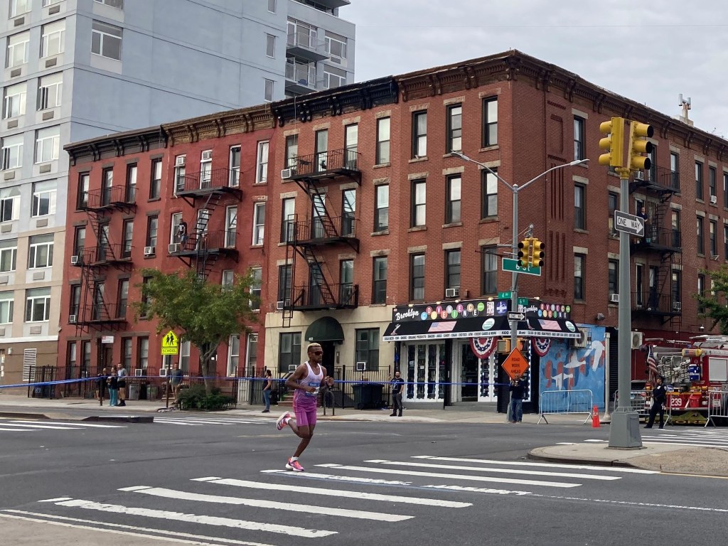 The character of the race changes completely after the elites, the sub-elites and the fastest club runners pass by. It becomes a festival. And as much as I love and appreciate the purity and elegance and, yes, excitement of the sport of running, for a spectator at the marathon distance, the festival is way more fun. Do Nascimento and his chase pack were in Queens by now; the best way to follow the front of the race would be to go home and turn on the television. But that would mean missing the spectacle of thousands of runners who’d trained (or not, in some cases) to run the greatest marathon in the world streaming through my very own neighborhood.