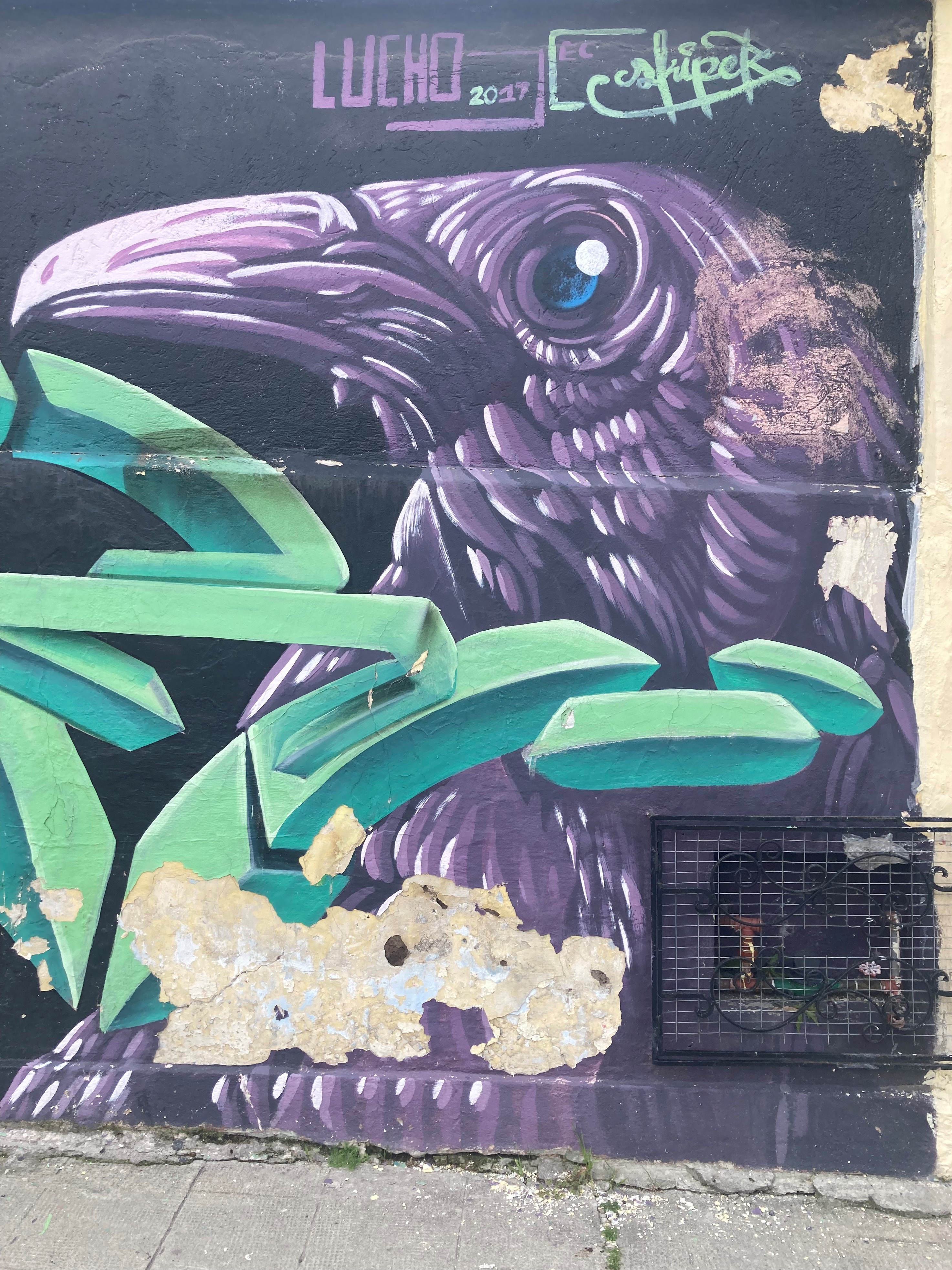 I spent much of January in Ecuador, mostly on a pair of birding trips organized by Brooklyn naturalist, artist and general bon vivant Gabriel Willow, but with some time on my own as well. In Qiuto, I stayed in the neighborhood of La Floresta, drawn by the food – from street vendor tripe in Parque Navarro to the ultra-high end tasting menu at URKO – and also by the street art. As you can see by the mural above this post, the latter was pretty spectacular.
