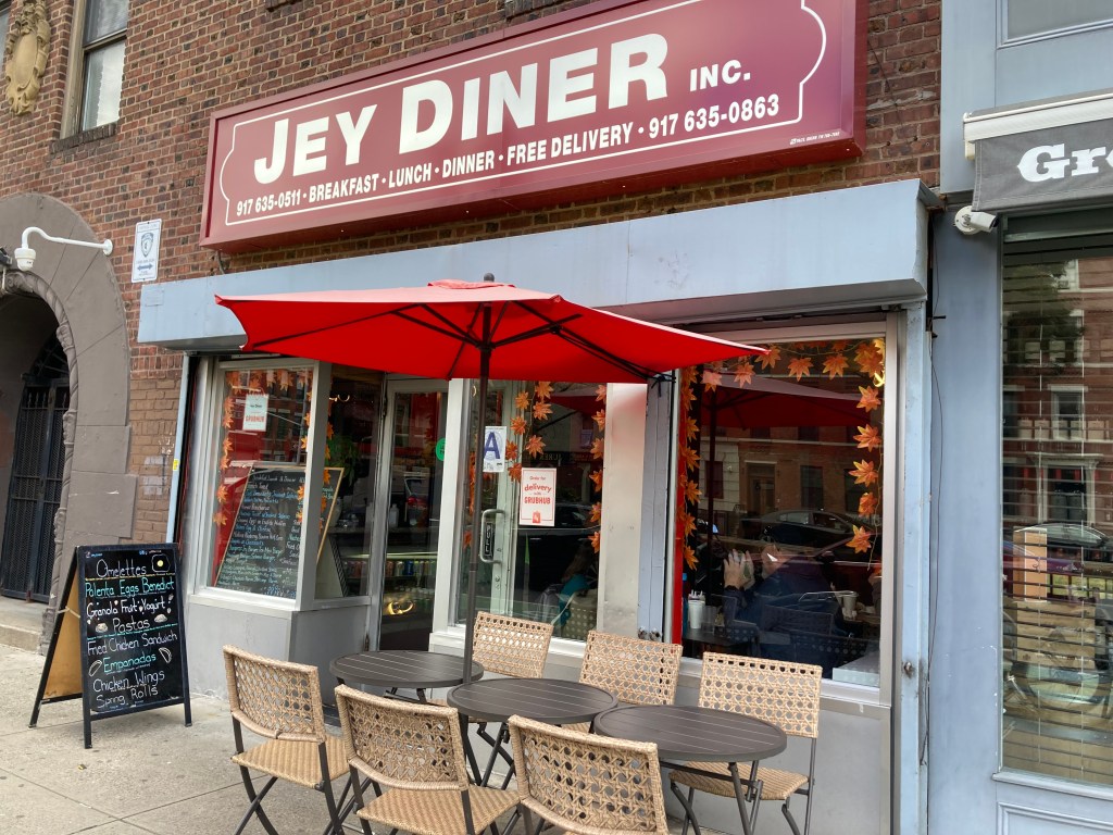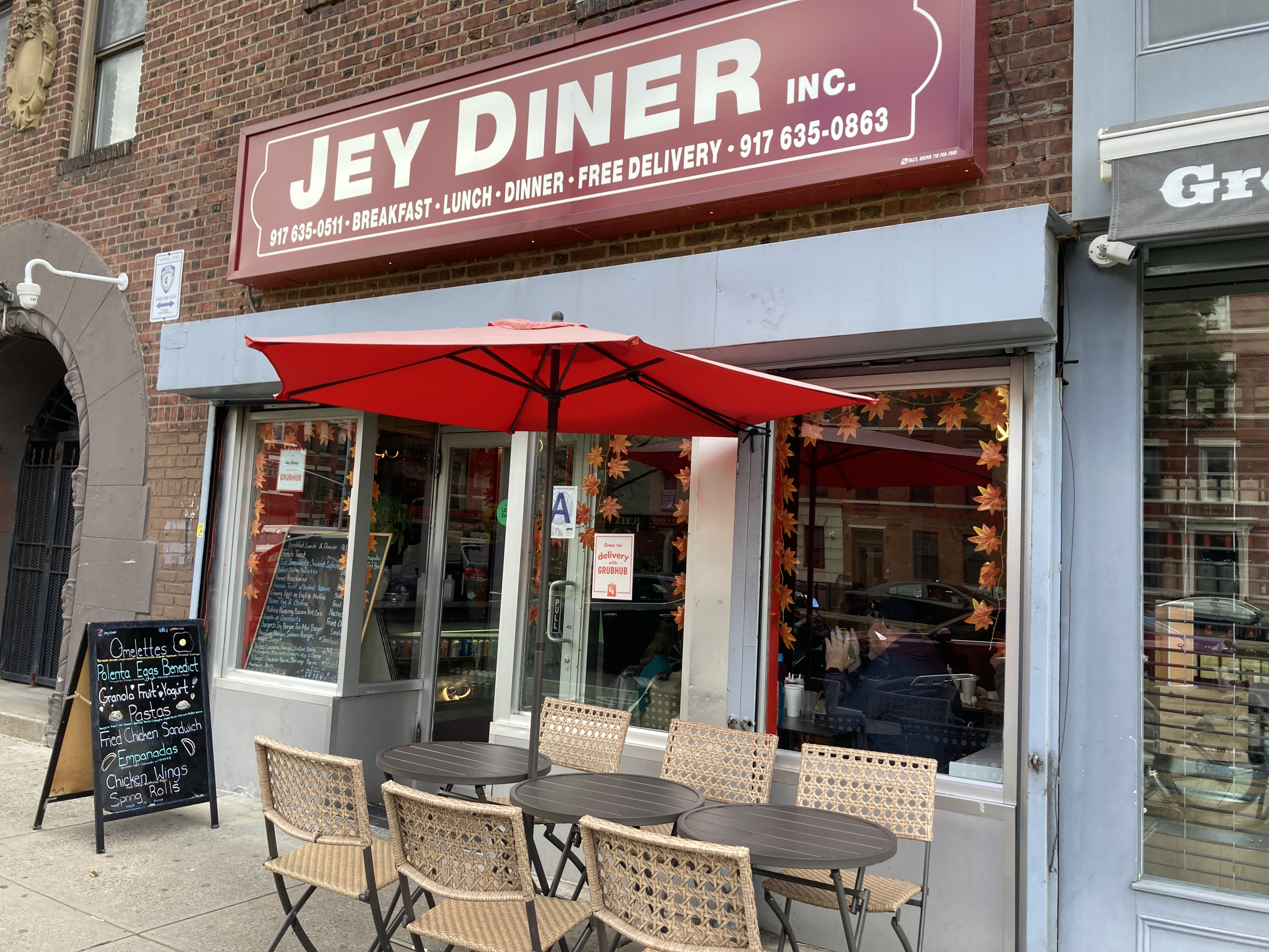 Jey Diner has been around for a few years, close to the 25th St stop on the R train. First I noticed its sign, which in all honesty, did not make me want to run to try it (maybe it was the “Inc.” that turned me off). More recently they added a sidewalk chalkboard that piqued my interest with some creative-sounding breakfasts (polenta eggs Benedict, anyone?). So, with Eric and a visiting Katie in tow, I gave them a try.