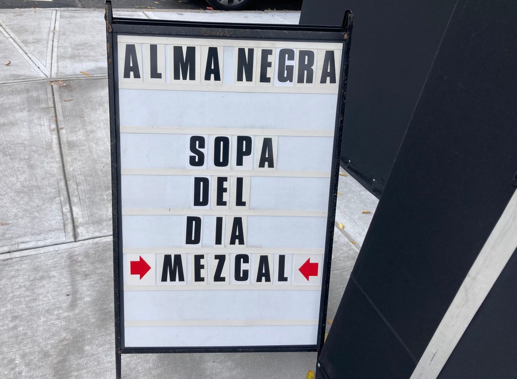 And besides – how can you not love a place that touts its impressive selection of tequilas and mezcals with whimsical sidewalk signs, like the one below?